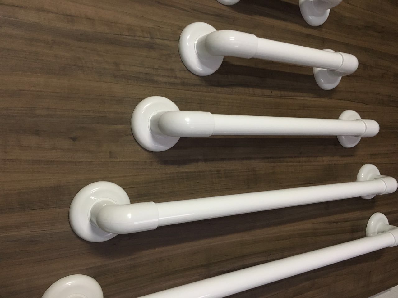 Matéria Prima: Barra em Alumínio com pintura eletrostática e cotovelos em ABS / Barra em Inox na cor neutra ou pintura eletrostática inclusa